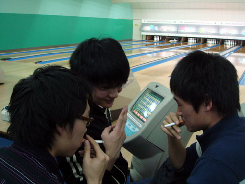 左上:O西&赤い人カップル 中上:K上氏&O西カップル 右下:? ↓Q.この中で一人だけ本物の煙草を吸っている人がいます。誰でしょう? A.OK崎君中は只の阿呆。右はかなり陰険(K内だけエアー煙草)。 Sモトスペシャル 当然拡大できません。ネチケットです。 トップページ>写真>ここ