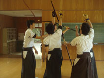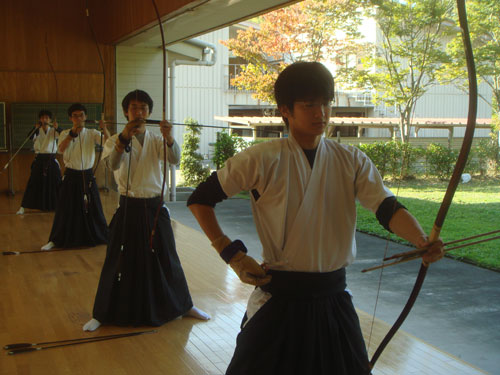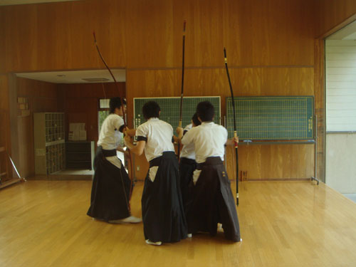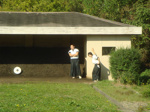 午前は12射の新人戦形式。午後は4人立ち×3チーム(三巴)による20射の競射が行われました。